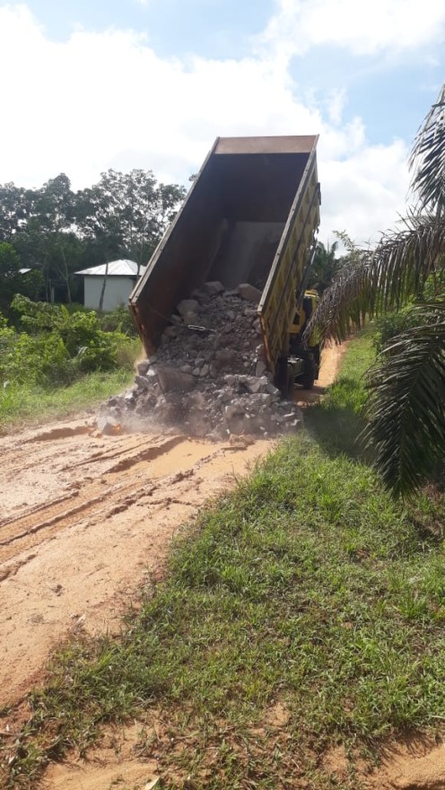 Bertempat di dusun 1 Desa Lada Mandala Jaya, Pemerintah Desa Berupaya mengatasi jalan rusak yang berada di lingkungan tersebut dengan melakukan penimbunan jalan menggunakan tanah latrit.
