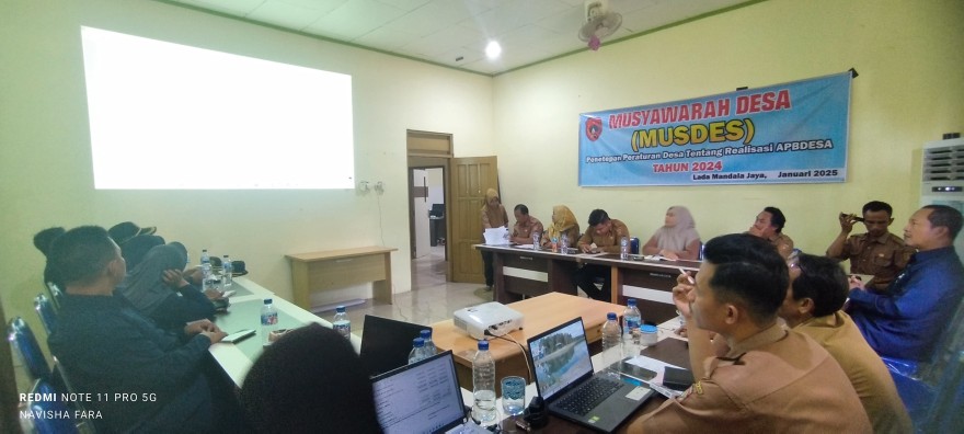Selasa, 21 Januari 2025 telah dilaksanakan Laporan Realisasi APBDes Tahun Anggaran 2024 bertempat di ruang rapat Kantor Desa Lada Mandala Jaya yang dihadiri oleh Kepala Desa, Perangkat beserta staf Pemdes Lada Mandala Jaya dan Ketua BPD beserta Anggota.