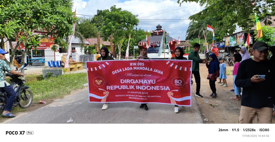 Minggu,17 Agustus 2025 di Desa Lada Mandala Jaya, Pemerintah dan Warga Masyarakat melaksanakan Karnaval dalam Rangka Memeriahkan HUT KE 80 KEMERDEKAAN REPUBLIK INDONESIA HUT KE 80 KEMERDEKAAN REPUBLIK INDONESIA.